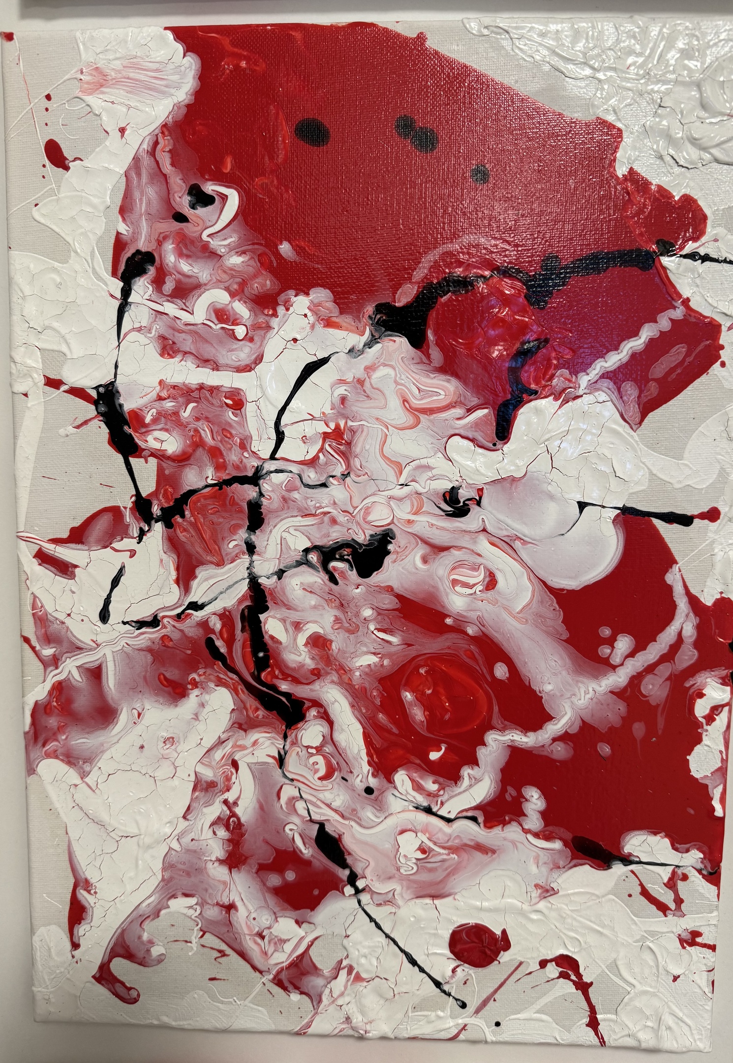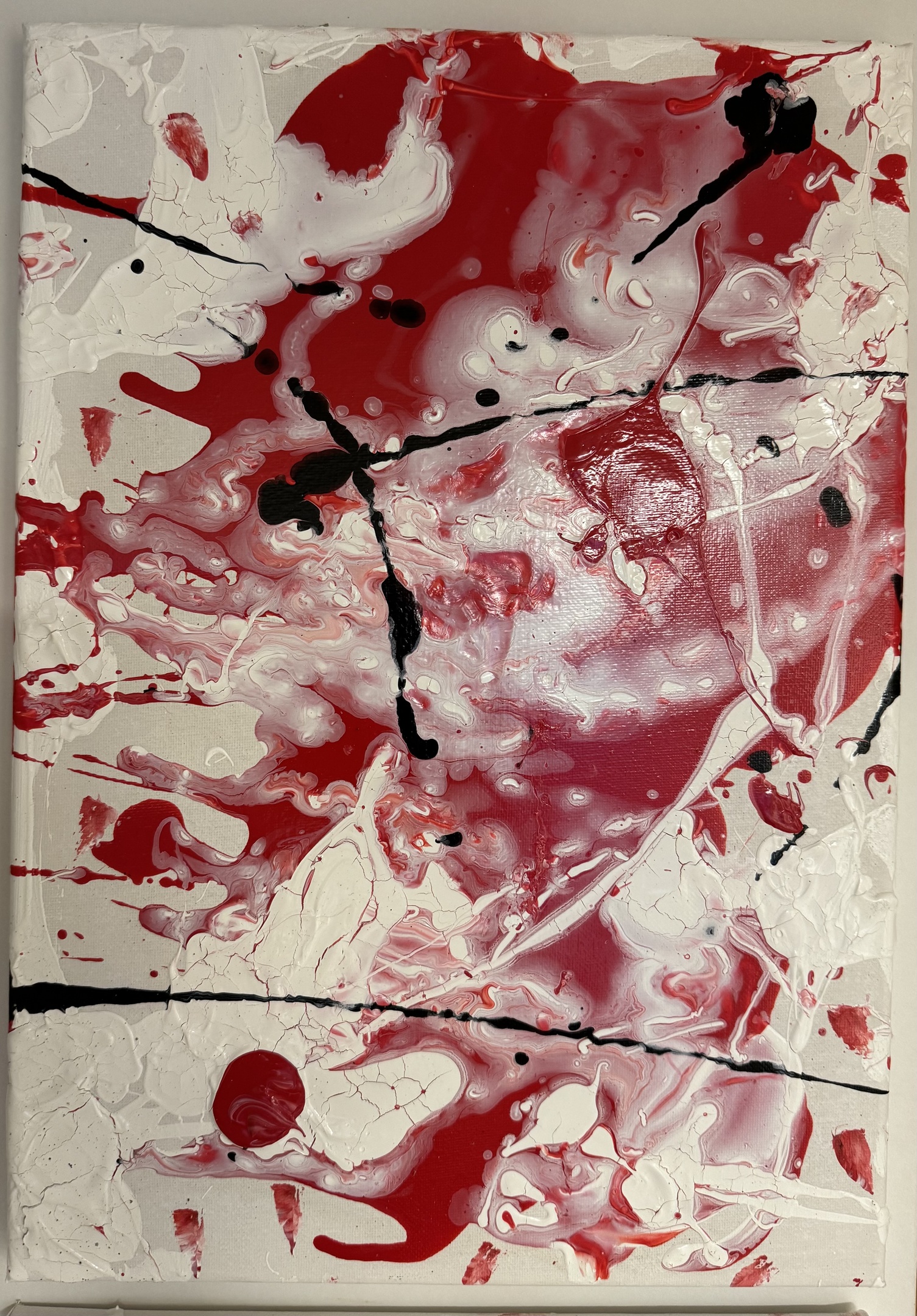 I min konst vill jag framhäva kontraster, texturer och hur färger interagerar med varandra. Jag jobbar med bland annat akryl-, spray- och oljefärger för att skapa den karaktäristiska färgblandningen och sprickorna i verken.